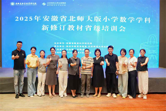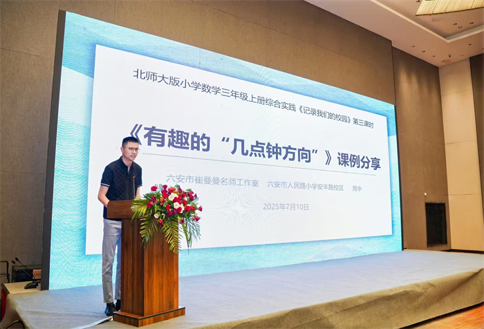 7月8日至10日,2025年安徽省北师大版小学数学新修订教材省级培训会在安庆市隆重举行。本次培训由安徽省教科院、北师大出版集团联合主办,来自全省各地的教研专家和骨干教师参加了此次培训。来自我区的六安市人民路小学安丰路校区晁中校长 (六安市崔曼曼名师工作室核心成员) 代表六安市在省级新教材培训中精彩展示创新课例。