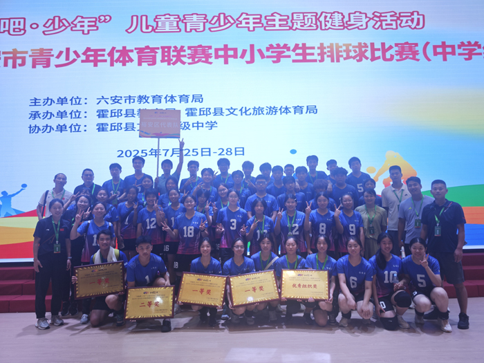 7月28日上午10时,霍邱县文峰中学体育馆排球场地助威声、呐喊声此起彼伏,2025年六安市青少年体育联赛中学生排球比赛决赛正在进行,来自裕安区的四支代表队分别与舒城县、霍邱县、霍山县和金安区、激战,争夺冠亚军。场上队员时而跃起扣杀,时而扑身救球,一个个精彩动作博得场外观众阵阵掌声。经过一个多小时的角逐,最终裕安区代表队获得男女甲组、女子乙组三个组别的冠军,男子乙组以微弱分差惜败霍山。该成绩再次刷新裕安区在市六运会青少年排球赛上三金一铜的战绩,进一步巩固裕安区青少年体育走在全市前列的优势。