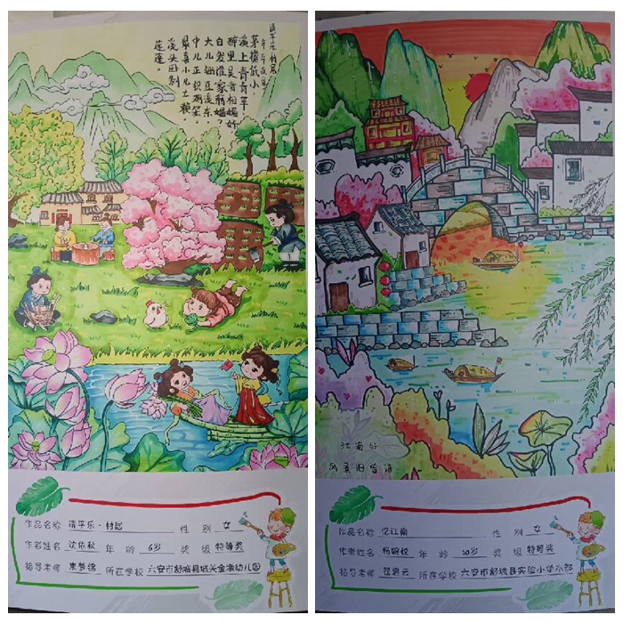 本次大赛围绕“传承文脉、致敬经典”主题,全省共有近70万少幼儿参加,各市共上报参赛作品近3762幅,共设特等奖43个,一等奖、二等奖、三等奖、优秀奖、园丁奖若干。其中,我县实验小学杨婉悦同学创作的作品《忆江南》荣获安徽省少儿组特等奖、金墩幼儿园沈依秋小朋友创作的作品《清平乐·村居》荣获安徽省幼儿组特等奖,9幅作品荣获省级一等奖,16幅作品荣获省级二等奖,10幅作品荣获省级三等奖;舒城县关工委荣获第十三届“党是阳光我是苗”少幼儿书画大赛活动县级组织奖。