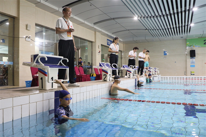 比赛现场,泳池碧波荡漾,气氛热烈高涨。随着裁判员的哨声响起,小运动员们如离弦之箭游向终点,泳池里水花翻腾,一道道身影劈波斩浪。小运动员们在碧池中奋勇争先,展现了出色的竞技水平和昂扬的精神风貌,为观众奉献了一场场精彩纷呈的“水中博弈”。选手们在比赛中也充分展示了平日刻苦训练的成果和扎实的技术功底。