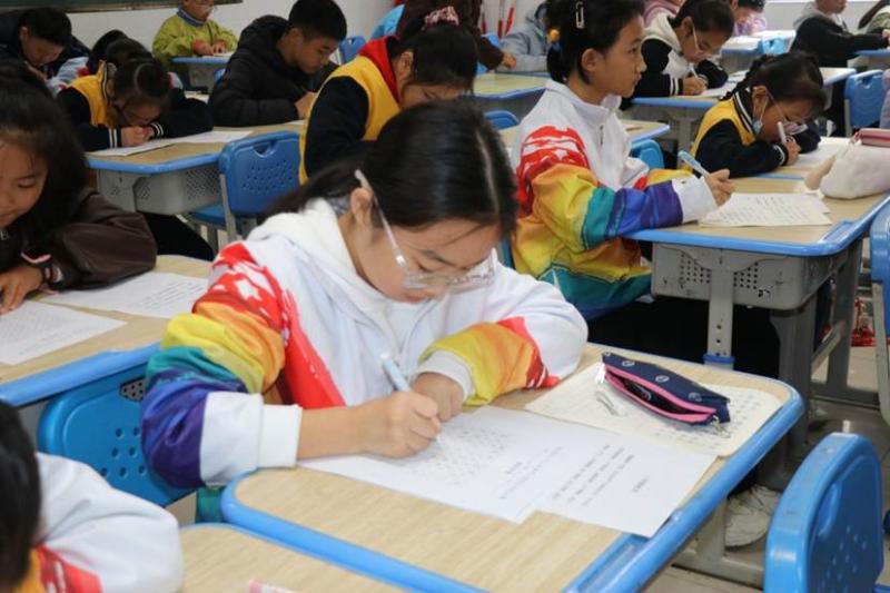 赛事的顺利开展得益于高效协同的组织体系。区教育局牵头,区教师发展中心与毛坦厂中学实验学校三方协同推进构建“主办统筹、承办落实、协办联动”的工作机制,此次比赛共设16个标准化考场,覆盖小学至中学全学段,涵盖钢笔字与毛笔字两大类别。每考场按55人科学编排,并配备两名专职监考人员,从考场布置、考务管理到作品密封,全程实行闭环管控,严格遵循“公平、公正、公开”原则,确保赛事权威性与公信力。