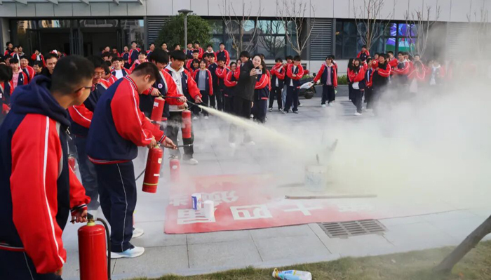 实战锤炼,有序疏散提升应急能力。实战演练是检验与提升应急能力的关键一环。新圣学校、查婆店学校、佛子岭路小学均组织了消防应急疏散演练。演练前,各校通过系统的安全教育主题班会,确保每位学生熟知逃生路线与自救要领。随着警报响起,全体师生反应迅速,弯腰低姿、捂住口鼻,沿预定路线有序撤离至安全区域。随后的灭火器实操环节中,师生及后勤、安保人员熟练掌握了“提、拔、握、压”的操作要领。查婆店学校还特别针对住宿生开展了夜间宿舍火情疏散演练,进一步健全了校园安全应急体系。