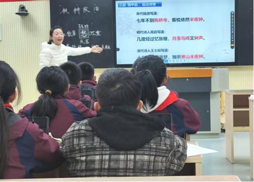 2025年11月27日,裕安区教体局教师发展中心联合城南小学开展“智慧课堂”主题教学研讨活动。教师发展中心教育信息全体成员、城南小学全体语文教师以及市级课题《AI支持的小学语文与中华优秀传统文化跨学科项目式教学案例研究》全体成员参加了该项活动。城南小学孟亚老师以经典古诗《枫桥夜泊》为载体,呈现了一节“智慧课堂”与中华优秀传统文化深度融合的示范课,为在场师生与教研人员带来全新的教学启示。