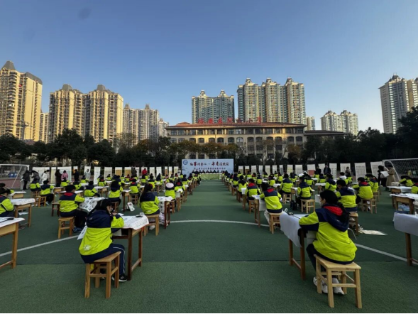 12 月 5 日上午,阳光明媚,百人软笔书法现场展评活动在学校操场精彩开场。此次比赛特邀裕安区书协主席赵善洲、六安市书协副主席胡家喜、方之等六位书法家担任评委。同时,参赛学生的家长也来到校园,全程陪伴,见证孩子的成长。