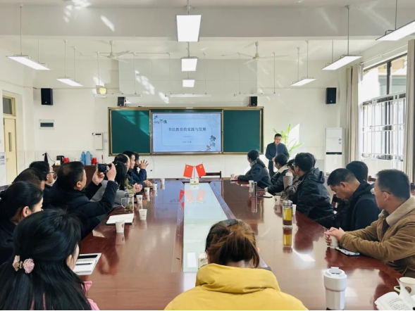 在教研交流环节,裕安区中小学书法兼职教研员、河西小学李大鹏老师以《翰墨润心以书育人——河西小学书法教育实践探索与区域发展思考》为主题进行分享。他指出,书法教育是一项系统工程,需要学校主导、教师协同、家校联动。河西小学通过制定《校园书法氛围建设实施方案》、推动“师生同练”,以“种子选手培育—社团强化—全员辐射”的模式,实现市级比赛“零的突破”。学校构建“团队 + 课程”双支撑,打造“翰墨润童心书法比赛”“写春联进社区”“主题书法展”三大品牌活动。近五年,学生获区级以上奖项数十项,其中省级奖项 18 项,书法教育已成为学校的核心特色品牌。未来,学校将实施“五维提升计划”,定期举办“书法教育研讨会”,助力区域书法教育均衡发展。现场教师围绕课程开设、师资配备等议题展开热烈研讨,为区域书法教育发展出谋划策。