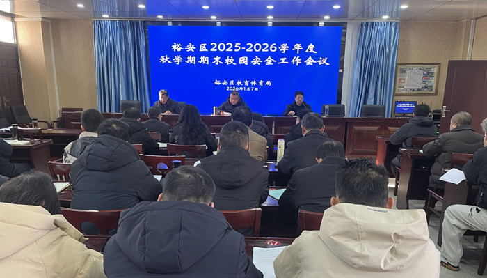 为全面部署期末及寒假期间校园安全工作,1月7日上午,裕安区教体局召开2025-2026学年度秋学期期末校园安全工作会议。区教体局分管安全负责同志,各乡镇中心学校、区直属学校、城区各校、民办学校分管校园安全及校园餐工作的副校长,区幼教中心相关负责同志以及区教体局安全中心全体人员参加会议。