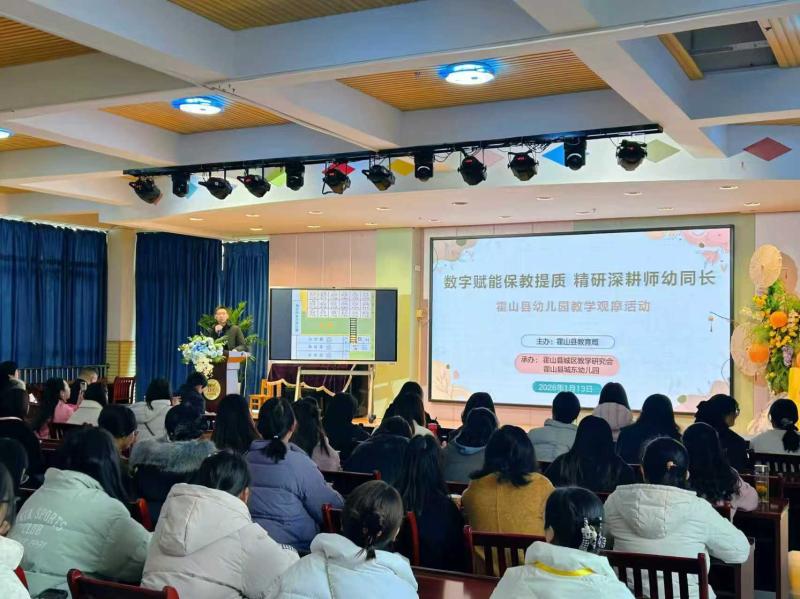 为深入践行“安吉游戏”教育理念,深化县域学前教育“1+N”联盟体建设,推动数字技术与保教工作深度融合,全面提升县域学前教育整体质量,1月13日,霍山县幼儿园教学观摩活动在霍山县城东幼儿园成功举办。来自全县公、民办幼儿园的近80名园长及骨干教师齐聚一堂,通过沉浸式观摩、深度研讨,共话数字时代县域学前教育高质量发展新路径。