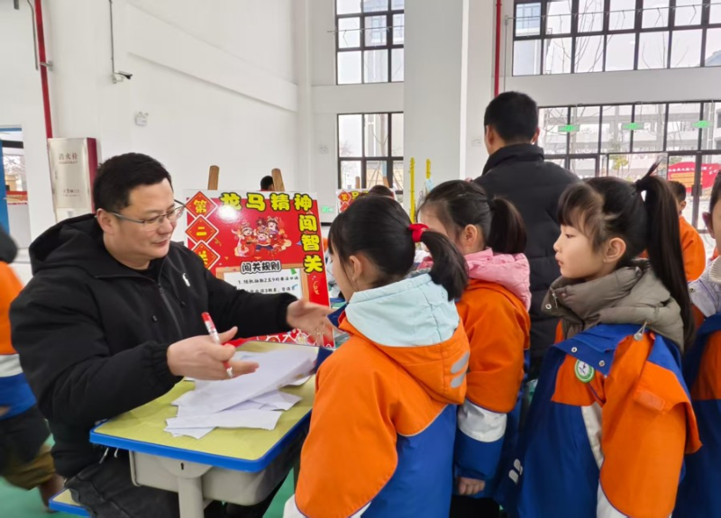 霍邱县城关镇中心小学教育集团三校区联动,同步开展“智马闯关 乐学成长”活动。“马踏飞燕识字词”关卡前,二年级学生小睿响亮地组词,赢得盖章后开心地说:“我就像真的小马驹跨过了障碍!”在“图形灵马智”“时间小骏马”等数学环节,孩子们动手操作、解决生活问题。音乐、美术、体育等项目的加入,更全面唤醒了学生的感知与潜能,实现了寓评于乐、综合评价。