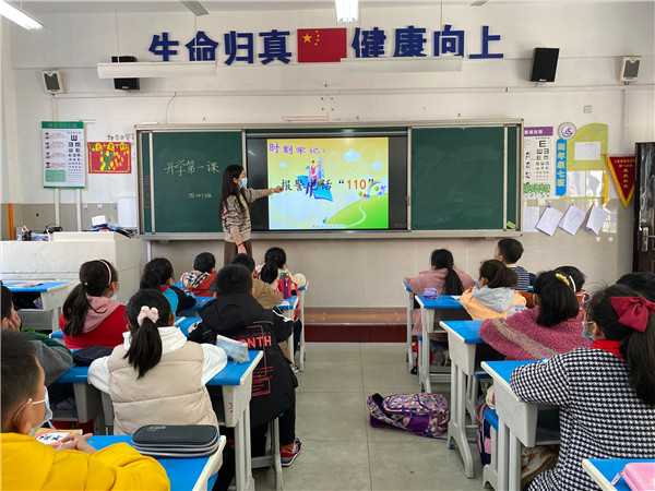 各校区根据学校统一安排,分年级错峰报名,学生先在门岗区通过红外线测温仪检测体温,体温正常方可进入校园。进入班级后,提交疫情防控的相关材料。在老师的组织下,安排座位、检查寒假作业,接着由班主任组织上好新学期的《开学第一课》。《开学第一课》由教导处统一制作,主要涵盖疫情防控知识宣传、校园安全、交通安全、消防安全和日常注意事项。生命安全教育是学校教育的重要组成部分,在疫情防控常态化的形势下,要着重强调防疫知识,春天更是各类传染性疾病的高发期,通过加强宣传教育,保护学生的生命安全,提高自护自救意识,预防和杜绝各类安全事故的发生。