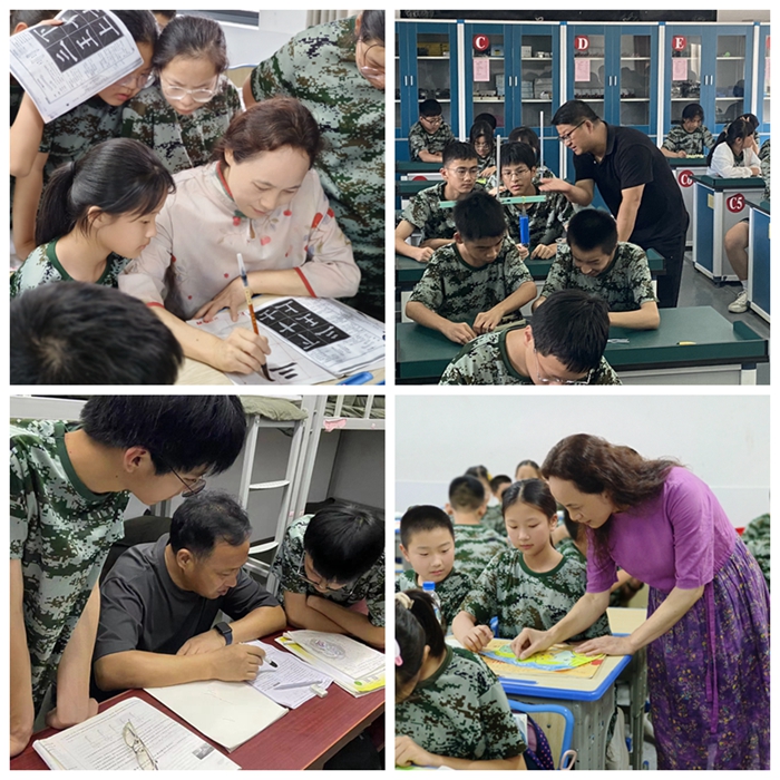 在日常训练中,教官们冒着炎炎烈日,挥汗如雨,严格训练;孩子们克服种种困难,坚持训练,无一人掉队;既锻炼了学生的体质,又磨炼了孩子们的意志品质。他们经历了酷暑的考验、汗水的洗礼、体力与意志的较量,取得了骄人的成绩;改变以往假期从学校课堂到社会补习班的模式,以转变学习态度、培养学习兴趣和习惯、拓展学生学习能力为根本,以释疑解惑为补充,把学生从沉重的课业负担中释放出来,让学习成为一种乐趣。除了日常训练之外,还有书画兴趣班,不仅为夏令营活动增添了一道靓丽的风采,而且激发了同学们对传统文化的热爱,增强了文化自信;活动还有内务管理,铺床叠被,整理宿舍;教会学生包饺子、包粽子等生活能力。夏令营的封闭管理模式,锻炼了孩子们的生活自理能力和团队合作意识,把以前整天围绕“三个一”即“一张床、一部手机、一台电视”的小宝贝训练成了一个个每天独立洗衣、独立铺床、独立学习和生活的小战士。