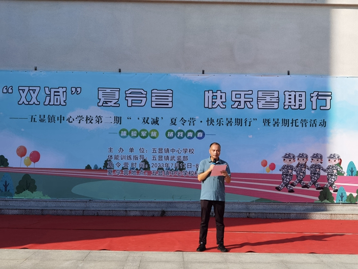 县教育局总督学王权出席闭营仪式并发表强调讲话,王权首先向五显镇中心学校第二届“双减夏令营、快乐暑期行”暨暑期托管活动顺利闭营表示热烈祝贺,向辛勤付出的教官、老师表示感谢,向一直以来关心支持五显镇教育事业的镇党委政府表示由衷的感谢,向学校的教育工作者提出殷切希望,要按照县局的部署继续扎实做好暑期大家访等各项工作。