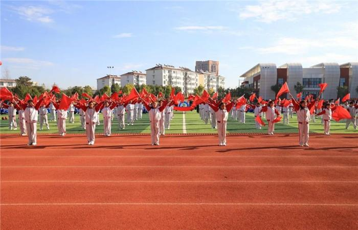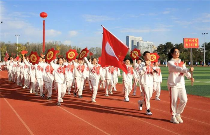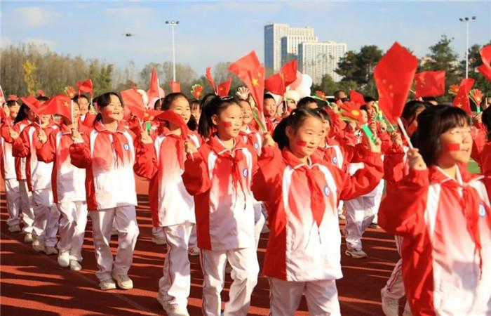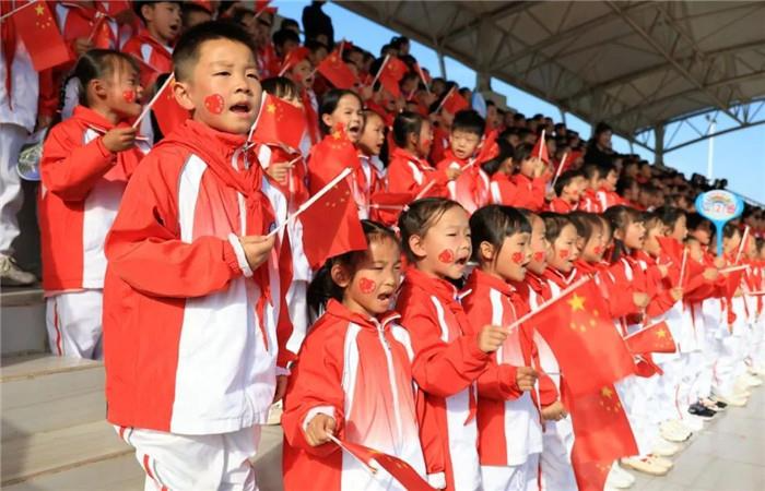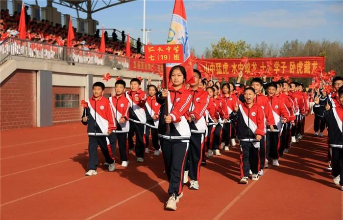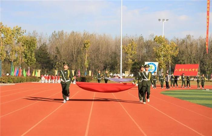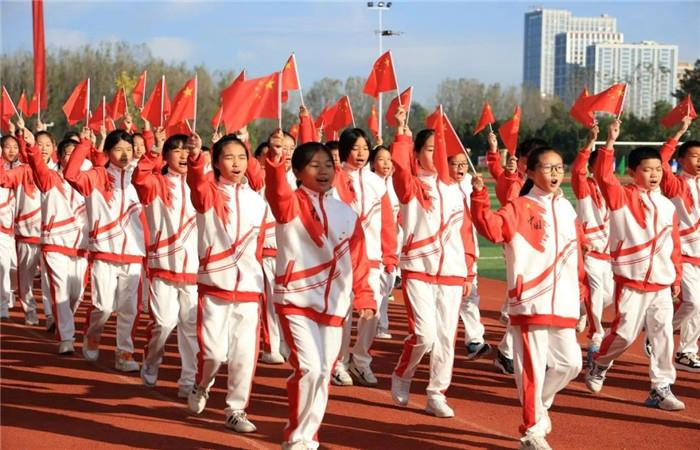 鲜艳的五星红旗冉冉升起,庄严嘹亮的国歌声在运动场上回荡。升国旗仪式结束后,全场齐唱校歌,慷慨激昂的《汇文之歌》响彻蓝天,全体学子向着校旗唱响了青春的旋律,开启了奋斗的华章。
