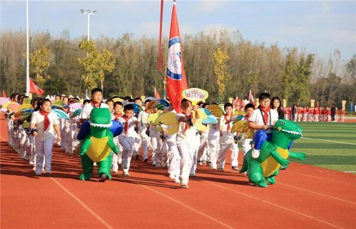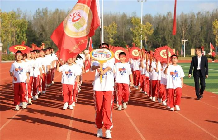 晨晖盎然,清风徐徐,各个方阵迎朝阳而起,面秋风而飞,相继走上了红色的跑道。国旗方阵、会旗方阵、校徽方阵、校牌方阵、鼓乐方阵、花环方阵和彩旗方阵先后入场。他们面容坚毅,正步铿锵,为整个入场式增添了一层闪耀的光芒。