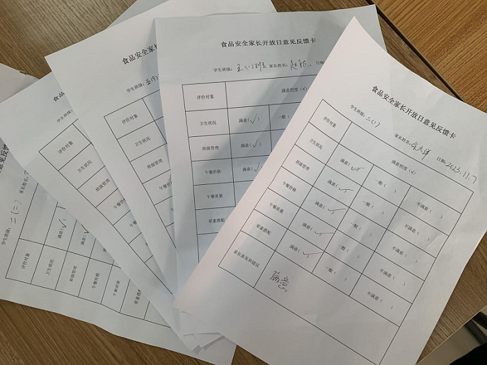 随后梅山路小学邀请学生家长一同前往教室进行陪餐,饭后家长代表们认真填写了意见反馈卡,对学校在食品安全、食堂卫生、学生食谱的定制等方面公开、细致的工作给予了肯定并提出了合理化的建议。