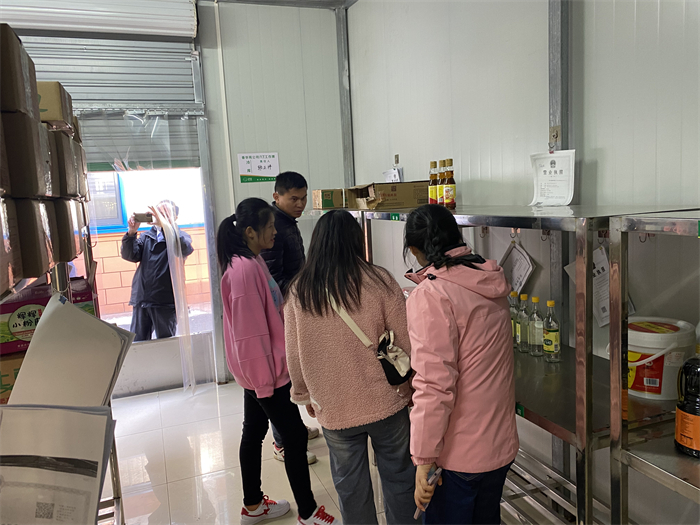 会后,家长代表在总务主任王真宝的带领下走进了学校食堂,“明厨亮灶”智能化的监控设备、员工健康证的硬性需求,家长初步了解了学校食堂透明规范的管理。来到储存仓库间,查粮油干调的品质与保存期,切实了解学校食堂的运作情况。