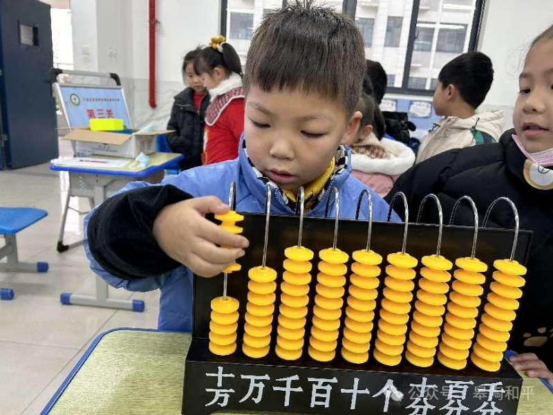 一年级数学主要分为“计算小达人”、“你说我做”、“蒙眼识物”三关。要求孩子们能准确计算20以内加减法、熟练操作计算器、对物体的分类等,根据准确率评奖章。