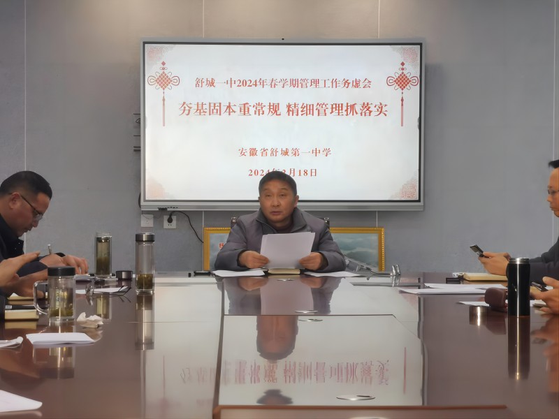 务虚谋实,擘画新篇。2月18日上午,舒城一中在新校区综合楼会议室召开2024年春学期管理工作务虚会。学校全体领导班子出席会议,校长刘双喜主持会议。