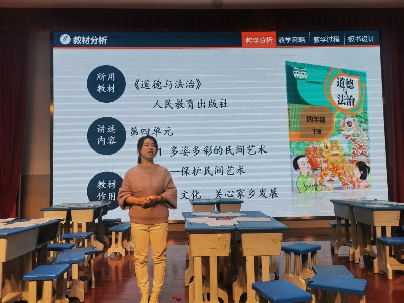 首先,人民路小学教师方昌玉展示了一堂精彩的新授课——《道德与法治》(四年级下册)《多姿多彩的民间艺术》,方老师通过有效开展课堂活动,环环相扣,精彩纷呈,不仅充分调动了学生的学习积极性,也取得了良好的课堂效果;接着,清水河第二小学刘伟老师进行说课,侧重对教材进行分析,针对学生特点,引导学生关注当地的民间艺术,感受民间艺人的聪明才智;三里桥小学教师李欣进行《少年但国志 桑梓谱新篇》时政述评,从小培养孩子家国情怀,感悟民间艺人的努力与智慧,内化升华,促进践行;最后是磨课环节,参与的老师、专家热烈讨论,并交流看法,一致认为教师应当明确当前教育形势,认真落实道德与法治学科教学,抓好学生的思想道德教育。