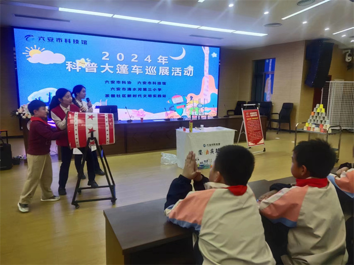 六安市清水河第三小学联合市科协、市科技馆开展“科普大篷车巡展”活动