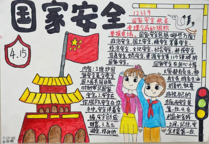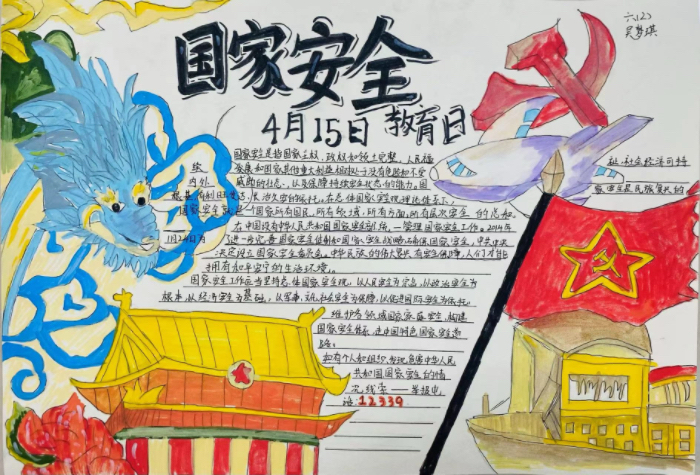 该校美术科组全体教师在所有班级开展国家安全宣传绘画活动,引领学生树立正确的历史观、民族观、国家观、文化观,陶冶高尚情操,塑造美好心灵,增强文化自信。一幅幅作品表现了队员们捍卫国家安全的信心与决心。队员们在绘制作品的同时,潜移默化将“国家安全”深深植入心中。