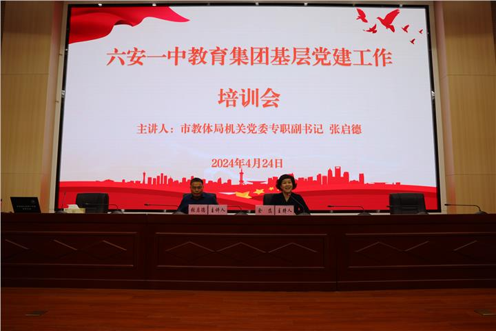 4月24日下午,六安一中教育集团基层党建工作培训会召开。会议邀请市教体局机关党委专职副书记张启德作题为《发挥党建引领优势 促进学校高质量发展》专题辅导,六安一中党委委员、副校长余蕊主持会议。六安一中党委班子成员,东校区、六安中学、皋城中学党总支及行政班子成员、总支办负责人,六安一中全体中层干部,六安一中、东校区、六安中学、皋城中学各党支部书记、委员,六安一中政治教研组长、各年级政治备课组长参加会议。