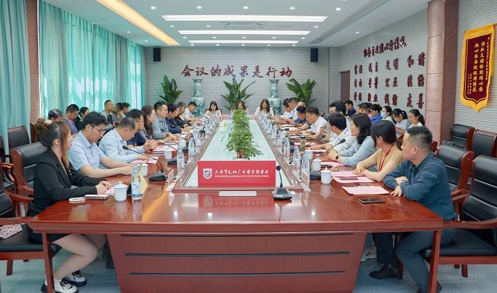 今日重逢,欣喜更甚。共话教育,力行致远。双方在会议室举行了座谈会,会议由金安区教育局副局长殷壮求主持。首先,殷局长对皖沪两地教育交流合作作了详细汇报。他表示:两地交流合作势头正盛,将在心理健康送教上门、传承红色基因系列文化交流、聚焦发展学生综合素质等方面持续深入地结对共建,在两地教育高质量发展新征程上再上新台阶、展现新作为、发挥新作用、谱写新篇章。