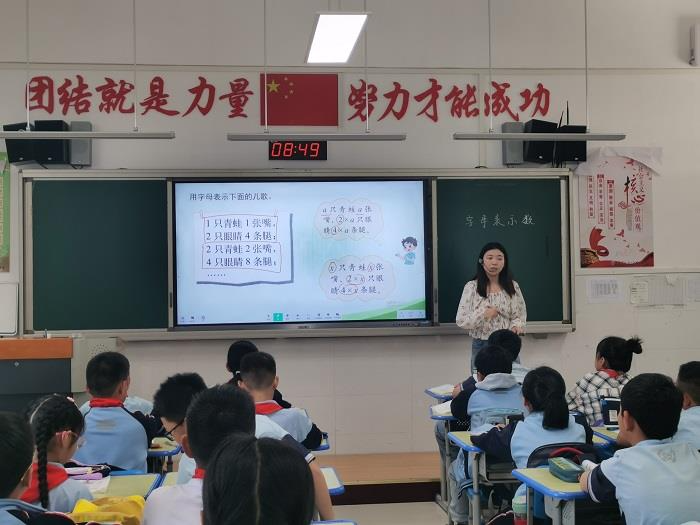 蔡丽老师执教了《字母表示数》一课,结合学生的实际情况,利用儿歌《数青蛙》导入新知,由易入难,层层深入,蔡老师采用了多种教学手段,如讨论、实例讲解等,激发了学生的学习兴趣,提高参与度。教学内容呈现具有层次行,符合学生的认知发展规律。