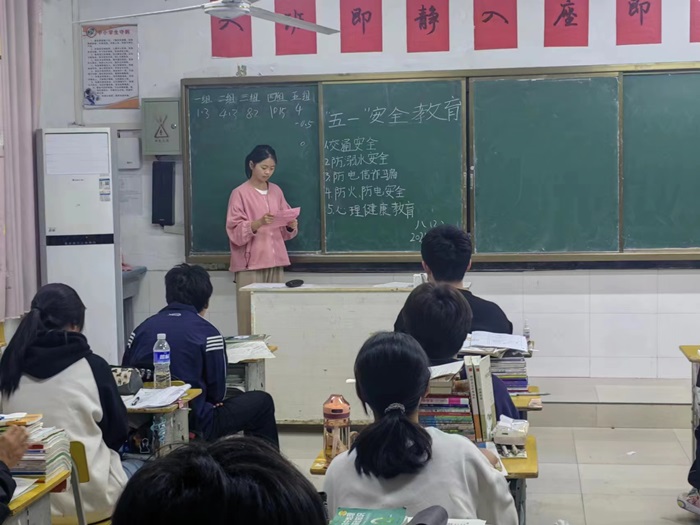 五一假期是出行的高峰期,为让学生们安全快乐的度过五一假期,各班班主任都利用班会时间开展了假期安全宣传。在家要注意防火防电防诈骗,在外要注意交通安全和防溺水安全。大家务必树立“安全第一,生命至上的思想”,文明度假,安全过节。