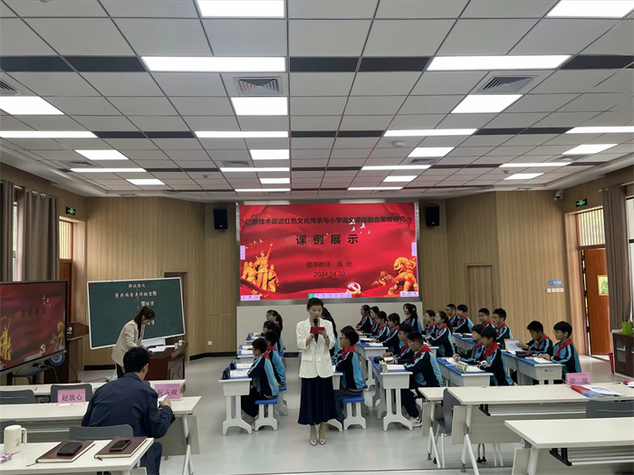 本次活动由王玉珠老师主持,赵放心校长致辞。接下来是课题组成员胡传柳老师与汤会老师分别进行课例展示。胡老师在《黄继光》课例展示中,借助信息技术播放影片《长津湖》节选视频,通过创设情境,抓住课文重点词句,让学生领悟黄继光舍生取义的英雄气概。汤会老师的《董存瑞》课例展示则以英雄人物的言行、神态、动作,融合六安红色文化的拓展,让学生受到革命精神的洗礼。两课共同点都是将传承与融合策略相结合,运用信息技术实现红色文化的跨时空育人。