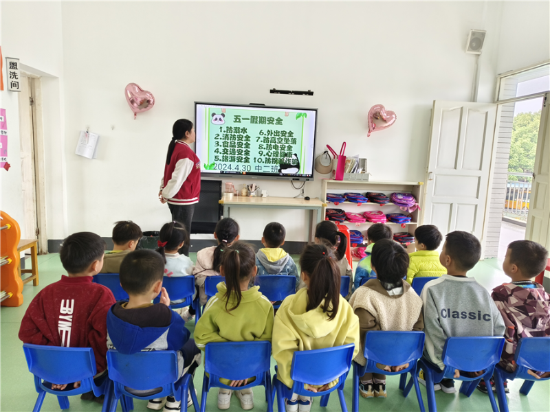 该园各班级根据幼儿年龄特点,利用多媒体课件、图片、故事、儿歌、案例等,让幼儿认识防溺水的标志和如何预防溺水及溺水救护方法等各类安全知识,提高了每一个幼儿的安全防范意识。该园通过悬挂、张贴防溺水宣传标语,电子屏幕不间断滚动播放防溺水知识、家长会、发送防溺水信息等方式广泛宣传防溺水知识,营造了浓厚的安全教育氛围。