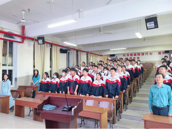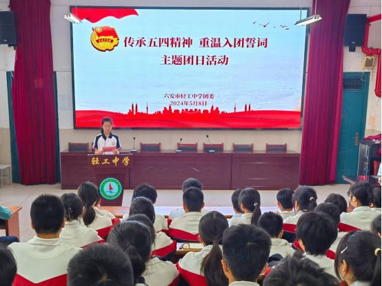 今年是新中国成立75周年,同时也是五四运动105周年和建团102周年,为了深入学习贯彻党的二十大精神,传承和弘扬“五四”精神,坚定学生的理想信念,激发青少年团员砥砺奋进的精神,5月8日,六安市轻工中学团委开展“传承五四精神 重温入团誓词”主题团日活动,本次活动由校团委书记蔡姚娟主持。