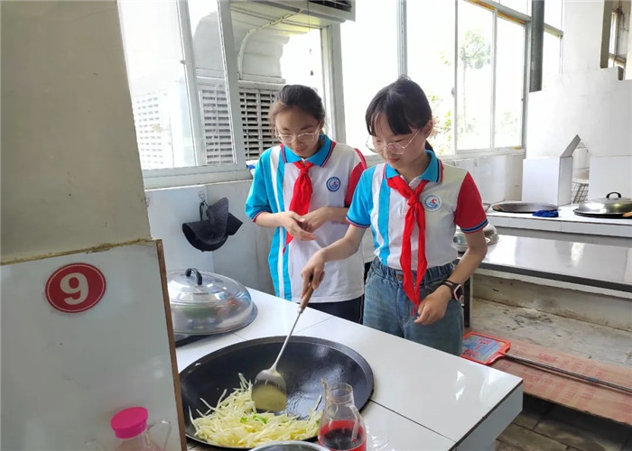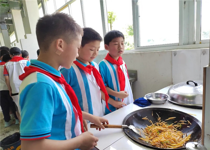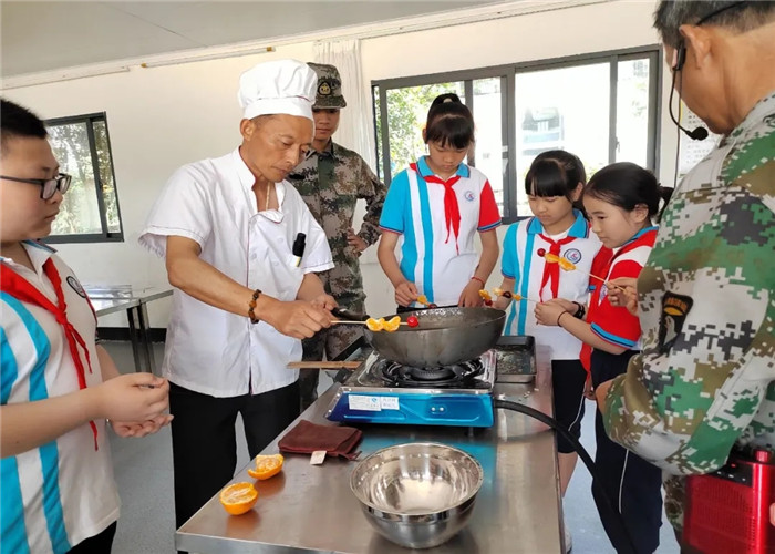 中午就餐过程中,孩子们在教官的带领下,能够做到不浪费粮食,落实了光盘行动。在体验大锅灶的过程中,孩子们三人一组,一人烧柴,一人炒菜,一人放调料,理解了团队合作的内涵,也收获了友谊。