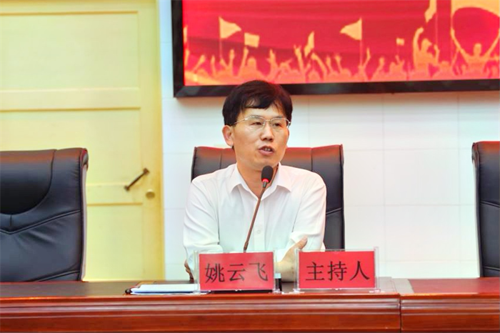姚云飞致欢迎辞,他对毛自森教授的到来表示欢迎和感谢,指出此次活动的开展充分体现了陆军工程大学对毛坦厂中学的高度认可与信任,对毛中高质量发展的关心与支持。