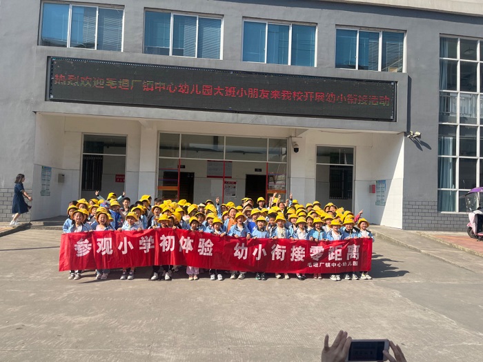 上午8:10,幼儿园大班的小朋友们跟随老师们的步伐,排着整齐的队伍,带着好奇和期盼,踏着轻快的脚步走进了毛坦厂学校的校门。毛坦厂学校校长王伟、教导处主任郭微微热情接待了孩子们。