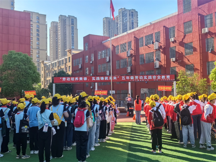 出发前,孩子们集中在操场上,参加了简短的活动启动仪式。负责本次活动的教官介绍了活动的流程安排,并对孩子们进行了必要的劳动实践安全教育,强调了几点纪律要求。