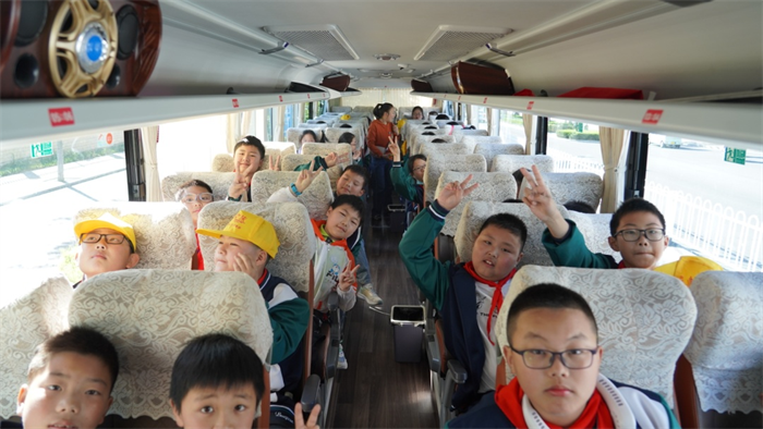 五辆大巴载着孩子们,沿着九十里山水画廊,一路欢歌笑语,向张店镇劳动实践研学基地进发。