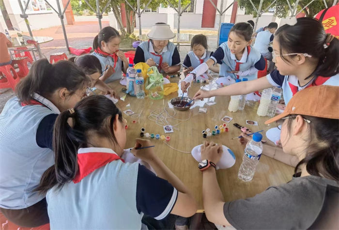 午餐后,大家返回劳动实践研学基地。一阵开心的团体游戏互动后,孩子们在基地老师们的指导下,学起了纯手工磨豆浆、画脸谱、学剪纸等传统劳动工艺。石磨呼呼地转,豆浆哗哗地流;画笔在手中舞动,脸谱在手下出炉;剪刀“咔嚓”地响,精美的窗花、大红的“春”字等剪纸“杰作”,在孩子们灵动的指间滑出。孩子们学得津津有味,做得有模有样,切身体验到了劳动者的辛苦,分享到劳动成果的自豪与快乐,感悟到中华优秀传统文化的魅力。个个兴致盎然,自豪感、成就感满满。