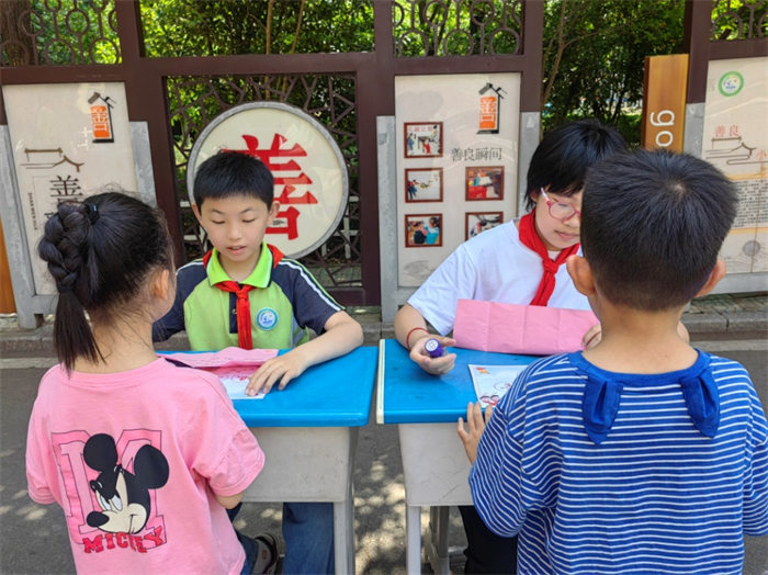 “入队知识我知道”闯关处,参与测试的高年级志愿者不时地变换着题卡内容。小朋友们全神贯注地阅读着,聚精会神地倾听着,争先恐后地抢答着,不时响起阵阵热烈的掌声。
