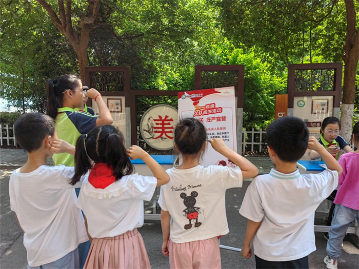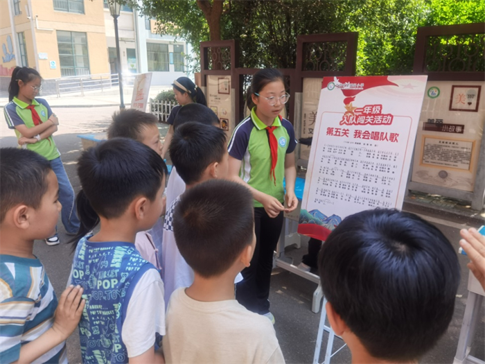 “我们是共产主义接班人,继承革命先辈的光荣传统……”铿锵激昂的旋律响起,激动人心的队歌唱响,在校园内回荡。闯关的小朋友,个个神情庄严,伴着队歌旋律,个个学唱得入情入境,人人通关过卡。