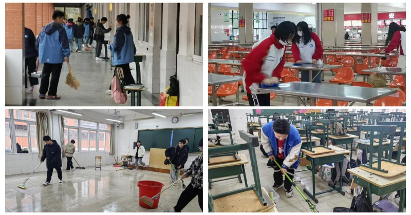 在劳动教育方面,五一劳动节前夕六安中学组织了全校性的大扫除,学生们热情高涨地参与其中,认真清扫每一个角落,教室变得窗明几净,校园更加整洁有序。同时,在校园的绿化带区域,学生们积极投入到除草工作中,不怕脏、不怕累,让绿化带重新焕发生机。