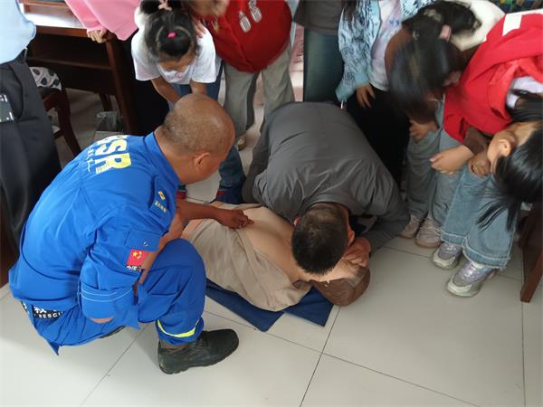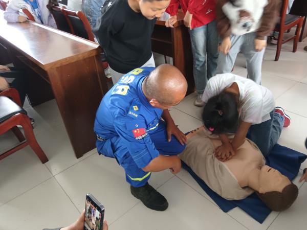 哪些水域不能游泳?哪些水域适合游泳?游泳前应该做好哪些准备?如果游泳时发生抽筋现象怎么办?……对于这些游泳的专业知识,蓝天救援队专业讲师一一进行了耐心讲解和解答。针对同伴落水、自己落水等情况,讲师一一讲解了详细的应对措施。讲师预设场景,邀请几位学生现场“施救”,通过真实的演练,让“施救”学生和场外的学生切实认识到盲目施救的危险。孩子们认真倾听,了解正确、有效的自救技能。“如何正确穿救生衣?”橙黄色的救生衣承载着生命的希望,在紧急情况下如何迅速、正确穿戴以发挥其作用是每个孩子应学习、掌握的。讲师邀请部分同学模拟溺水场景并给学生穿上救生衣,还给孩子们讲解正确的穿戴方式,以最大限度地发挥救援工具的作用。随后,蓝天救援队工作人员又借助溺水者道具,演示了溺水的心肺复苏急救方法,提高了学生的自救互救技能。讲师讲得认真,同学们也听得格外仔细。通过讲授专业的知识,让学生明白了怎样有效预防溺水。同学们也通过实际操作,更加规范地掌握了如何进行自救。