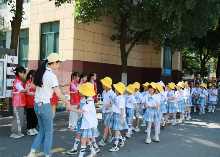 小朋友们整装待发,在老师的带领下,坐上了校车,既紧张又期待。怀揣着对小学的美好憧憬,迎着朝阳与微风,在老师的带领下,小朋友们排着整齐的队伍,走进六安市清水河第一小学,开启了一段有趣的探秘之旅。