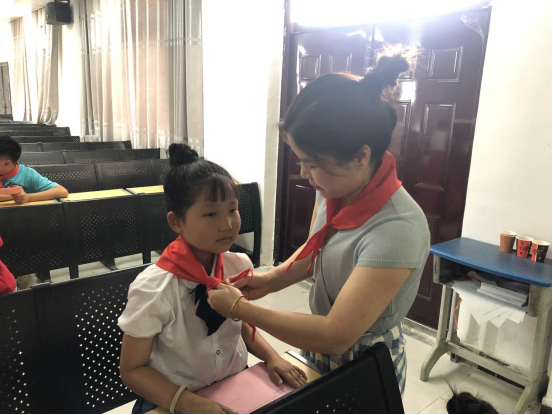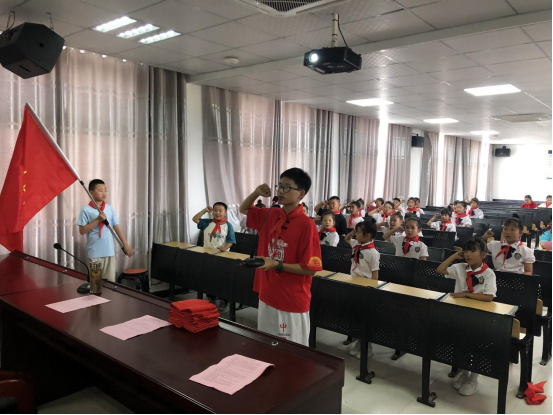 随后,大队部优秀少先队员代表为新队员佩戴红领巾,在鲜艳的队旗下,新队员紧握拳头,庄严宣誓。活动上,双河小学党支部书记张全心代表党组织进行讲话,他首先对新队员表示祝贺,对在学校少先队工作中辛勤耕耘的辅导员们表示感谢。最后,王大瑞带领全体少先队员呼号,活动圆满结束。