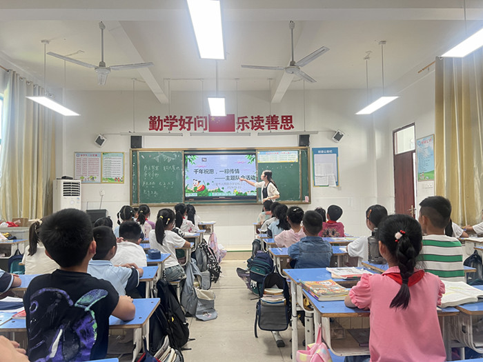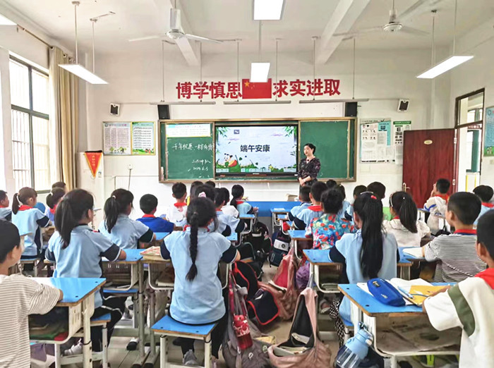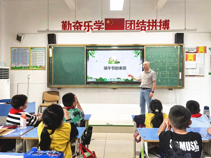 队会课上,各中队辅导员设计了“端午节的来历、端午节的习俗、端午节的诗词、端午节的当代演化、端午节相关谚语、端午节知识竞赛”等板块,组织队员学习端午节相关知识文化。从端午节由来、有趣的节日习俗、端午节诗词等方面让队员明白:端午节不只是粽子节、龙舟节,更是我们的民族节、爱国节。