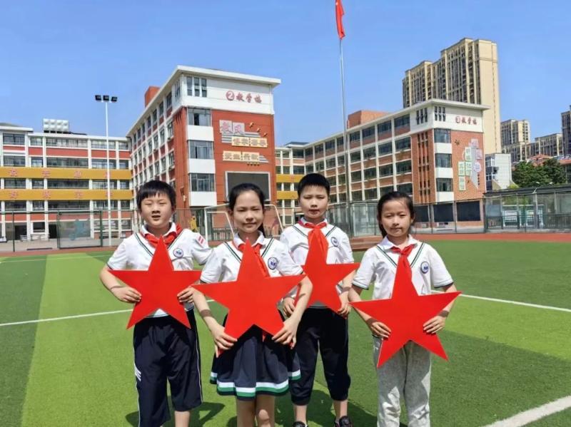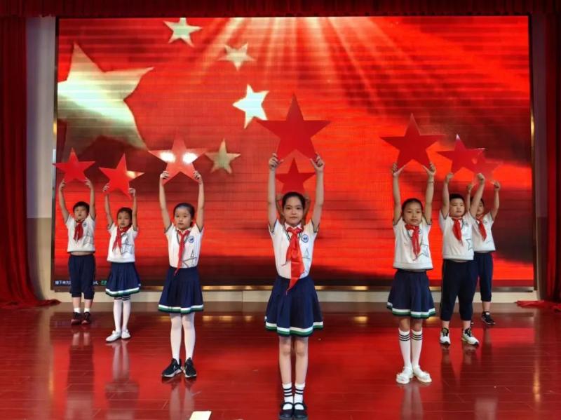 六安市人民路小学的同学为上海市松江区九里亭外国语实验学校的同学们送上了祝福,希望两地的小朋友们都能健康快乐地成长。接着李子耀、艾建悦、戚远昊、胡宸菲、易文博、何雨瞳、孔维子悦、陈怡含等同学共同朗诵了诗歌《红色的童话》。他们用稚嫩而充满力量的声音,将红色故事娓娓道来,传递着红色精神,也表达了对未来的美好憧憬。