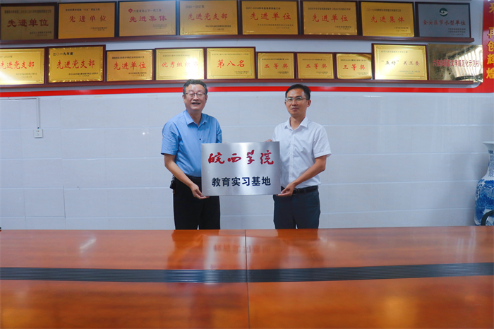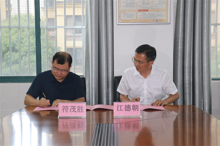 随后举行的签约授牌仪式上,江德朝与符茂胜代表双方签订教育实习基地共建协议,孔敏为基地授牌,参与仪式人员一起合影留念。