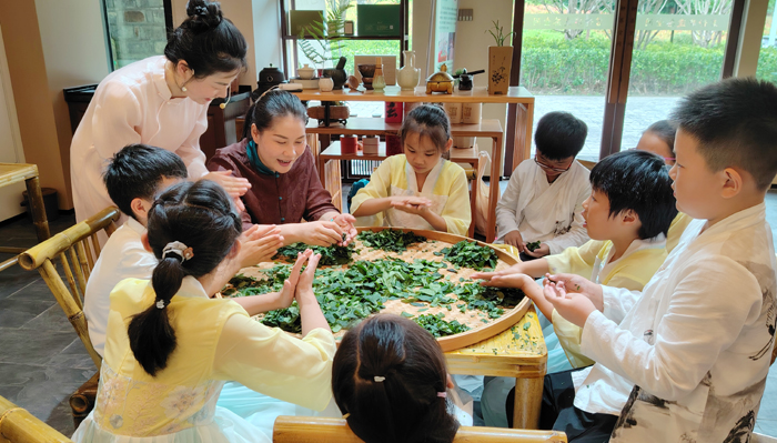 茗静茶室探索,品味环境美学。来到茗静非遗茶空间,同学们参观了茶室的空间布局和陈设,感受到了茶文化的环境美学。在茶叶审评教室,顾修莉老师为孩子们讲解了茶叶感官审评的基本知识,为他们的将来更精湛的茶艺之路播种下宝贵的种子。