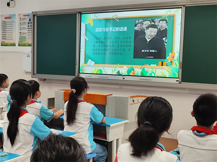 9月2日,全校各中队共同开展主题班队会,队员们聚精会神地观看视频内容。