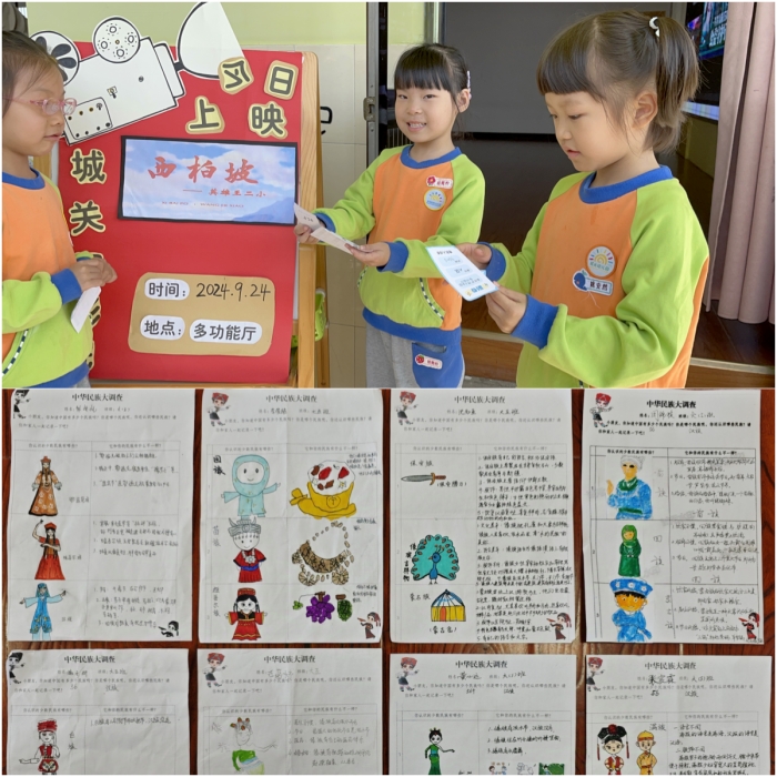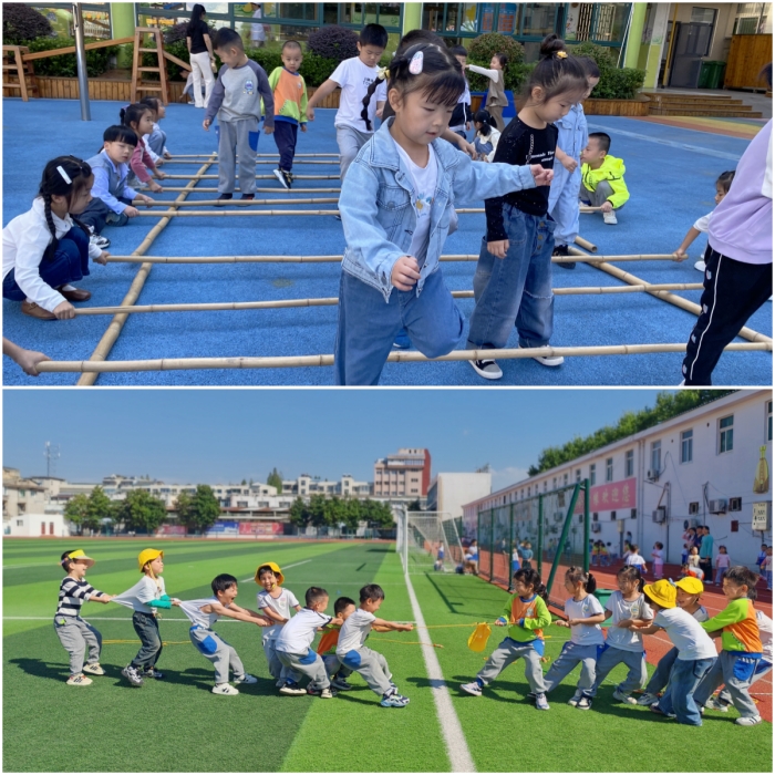 聆听红色故事,传承红色基因。大班组以游戏为基本活动,在“观红色电影”、“玩民间游戏”、“认识中华民族”、“诗词话山水”等活动中带孩子探寻峥嵘岁月里的红色经典,感受红色信仰,传承红色基因。