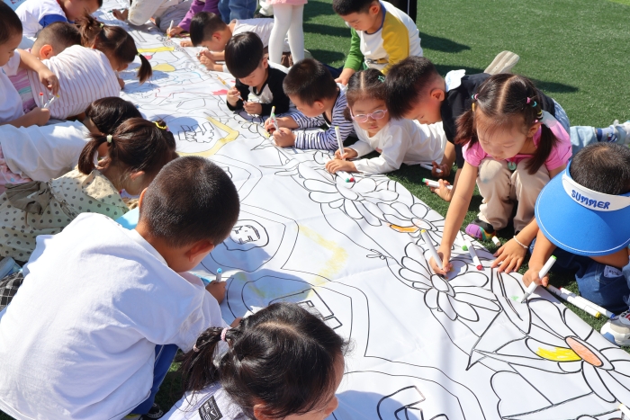 中班组幼儿用画笔感受祖国的日新月异,用百米画卷去记录祖国大好河山,更用自己的实际行动向祖国妈妈表达美好的祝福。